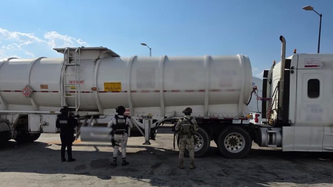 Durante el primer patrullaje, las Fuerzas de Seguridad Pública del Estado (FSPE) y la Sedena interceptaron un tractocamión Freightliner modelo 2023. Al realizar la inspección de la unidad, el conductor, identificado como Edgar Miguel “N” de 29 años, mostró documentación con inconsistencias graves y no logró demostrar la procedencia de los 33 mil 312 litros de gasolina que trasladaba en un semirremolque tipo tanque.