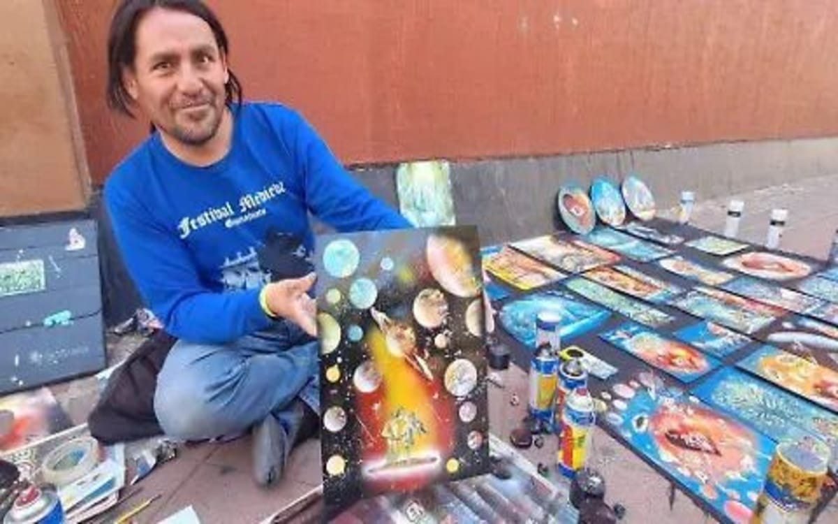 El artista José Ismael Reyes aerosolgrafía Guanajuato domina el arte del spray, inspirado por el muralismo mexicano.