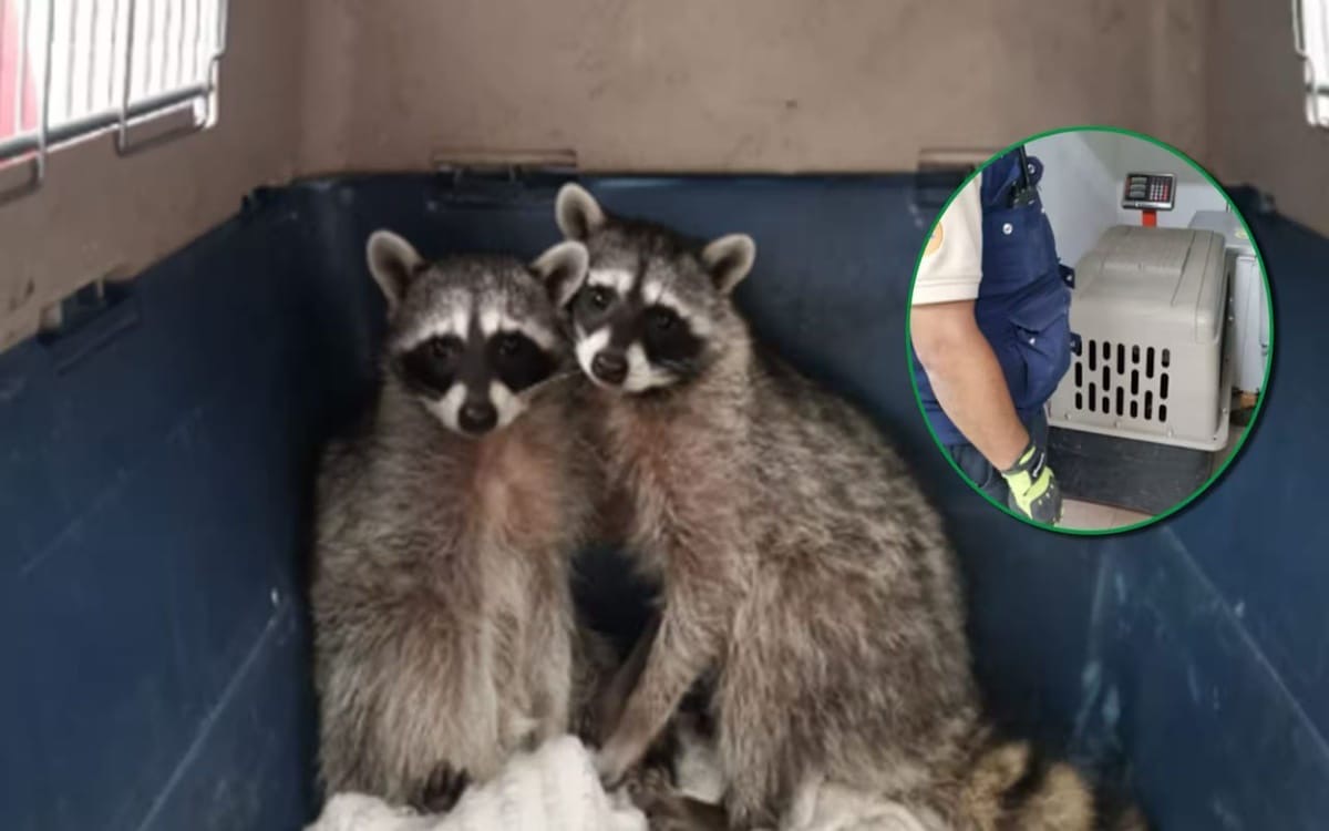Dos mapaches en casa Balcones del Campestre fueron rescatados y trasladados al Zoológico de León.