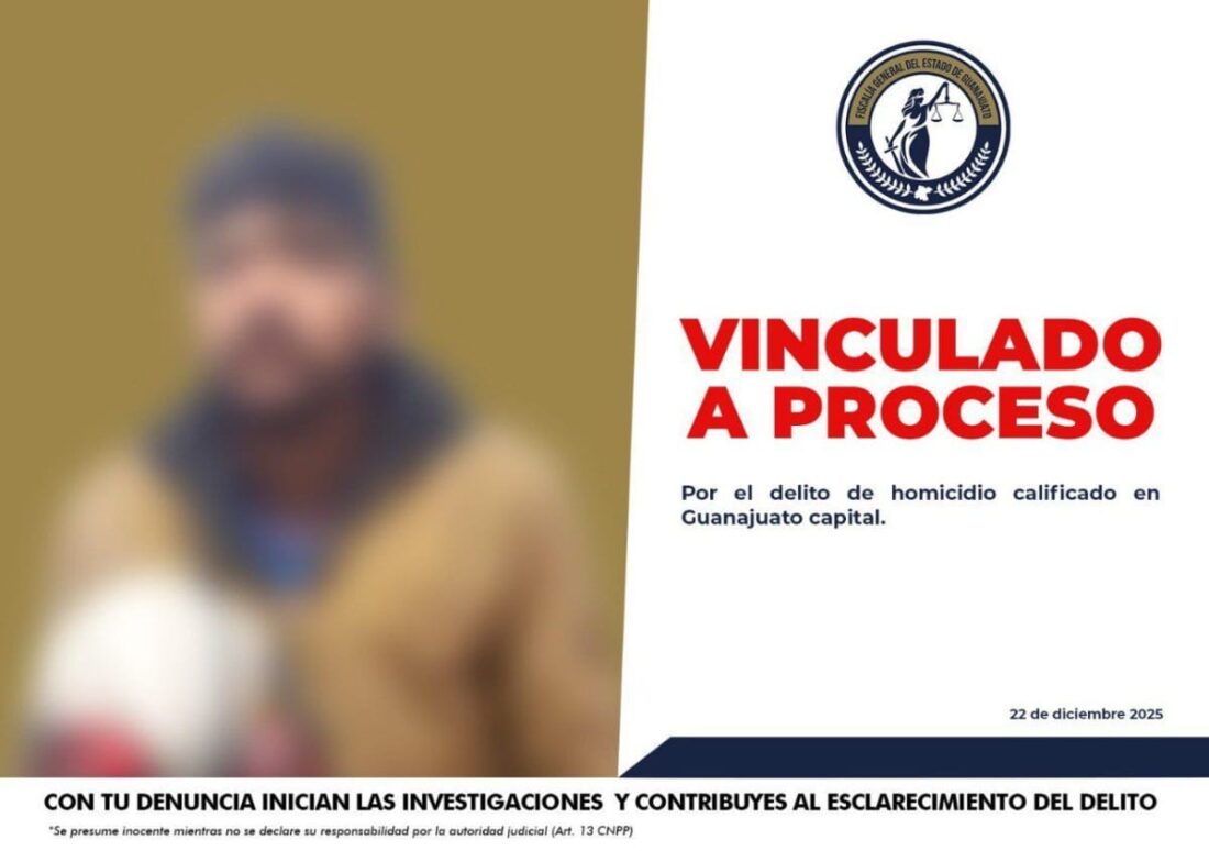 La Fiscalía General del Estado de Guanajuato logró que un Juez de Control dictara vinculación a proceso en contra de Mahicol “N”. El imputado es señalado como el probable responsable de un homicidio en Guanajuato capital, cometido con alevosía en contra de un hombre el pasado mes de junio en una de las zonas más transitadas de la ciudad.